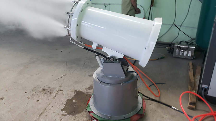 1、雾炮机的除尘效果与喷雾颗粒直径是有密切关系的,而在这里其中,干雾雾炮的灵魂部件是喷嘴,将水雾化成适合的降尘水雾颗粒,从而加 快降尘速度,使得喷洒均匀