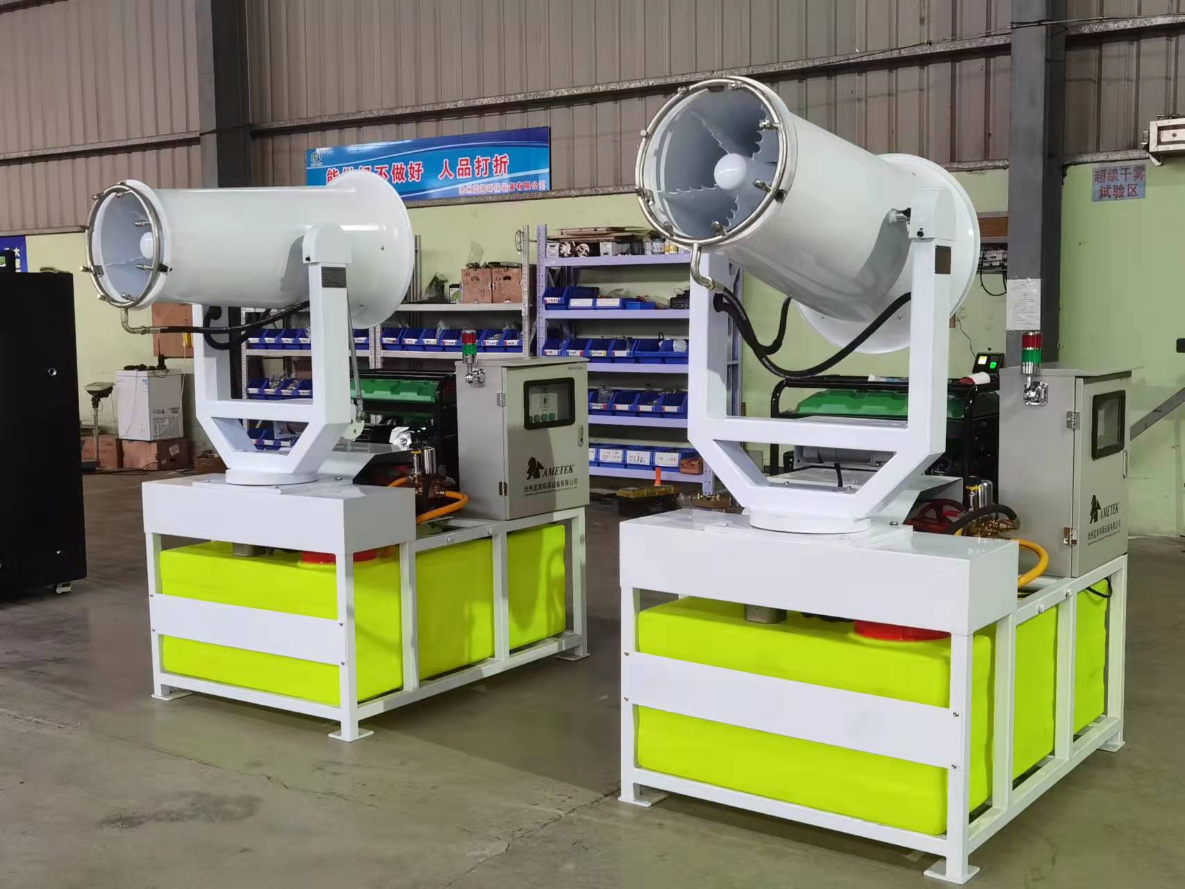 除尘炮雾机别名除尘雾炮机门用于粉尘的源头治理,通过高压喷嘴,喷射出与粉尘大小相当的水雾,水雾与粉尘结合凝聚成团,在重力的作用下达到沉降的效果。是目前无组织排放粉尘治理唯 一有 效的产品,门用于拆 迁/土方工程、市政环卫、露天矿、堆场及垃圾填埋等行业,要想取得很好的效果,一定要按照雾炮机的使用说明来操作它。